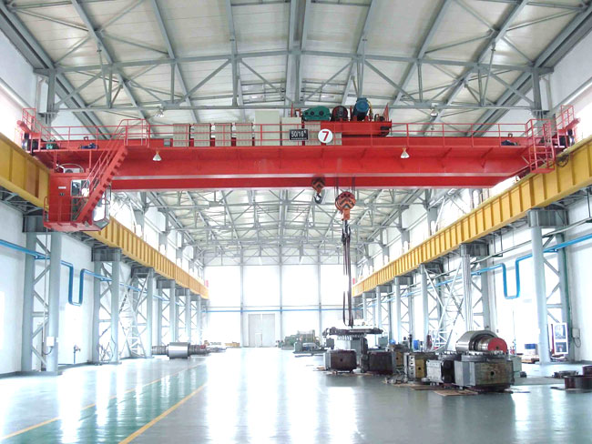 橋式起重機是橫架于車間、倉庫和料場上空進行物料吊運的起重設備。由于它的兩端坐落在高大的水泥柱或者金屬支架上,形狀似橋。橋式起重機的橋架沿鋪設在兩側高架上的軌道縱向運行,可以充分利用橋架下面的空間吊運物料,不受地面設備的阻礙。它是使用范圍**廣、數量**多的一種