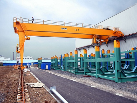 它的金屬結構像門形框架,承載主梁下安裝兩條支腳,可以直接在地面的軌道上行走,主梁兩端可以具有外伸懸臂梁。
