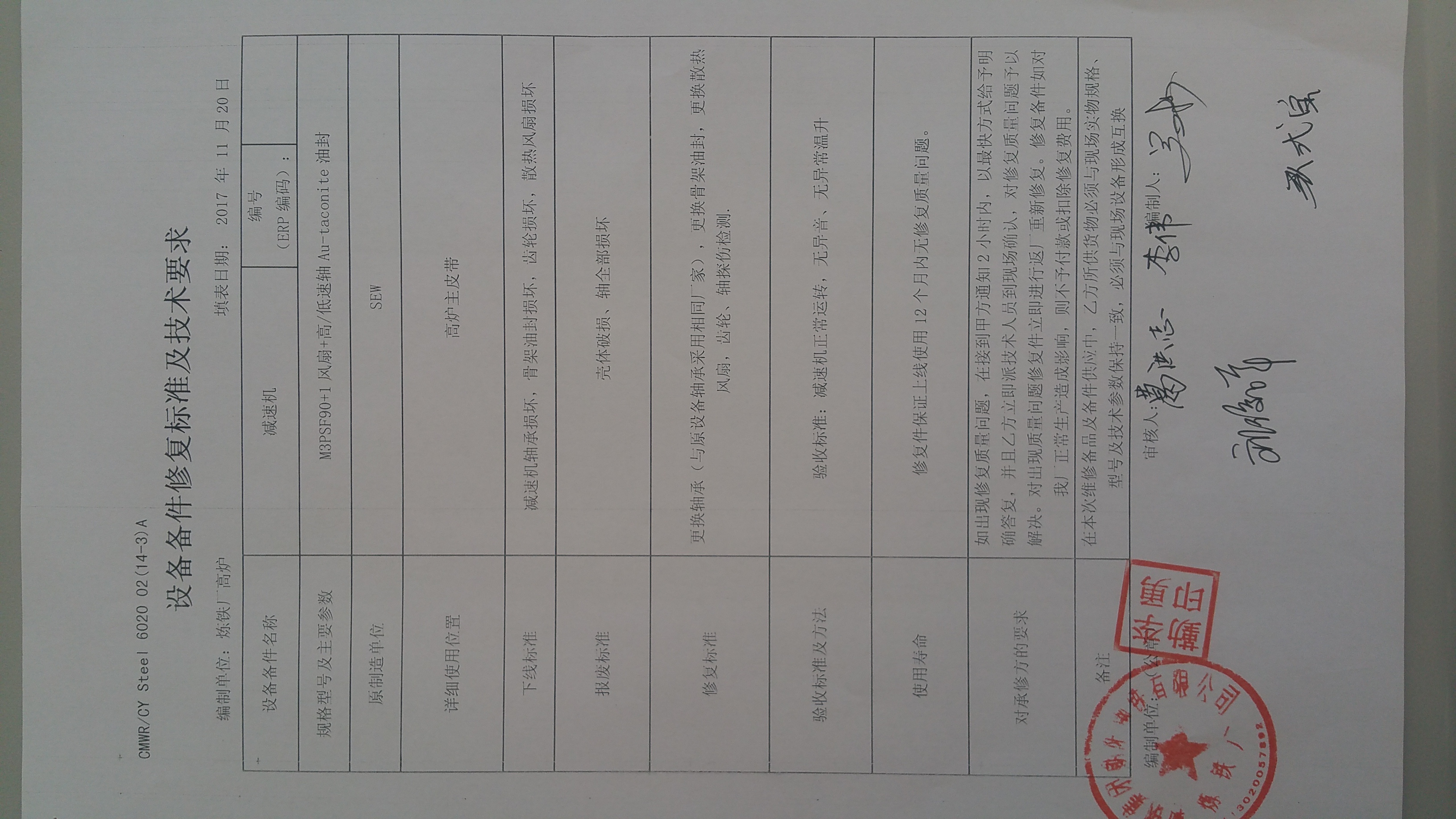 2.項目名稱:高爐主皮帶減速機修復(朝陽)