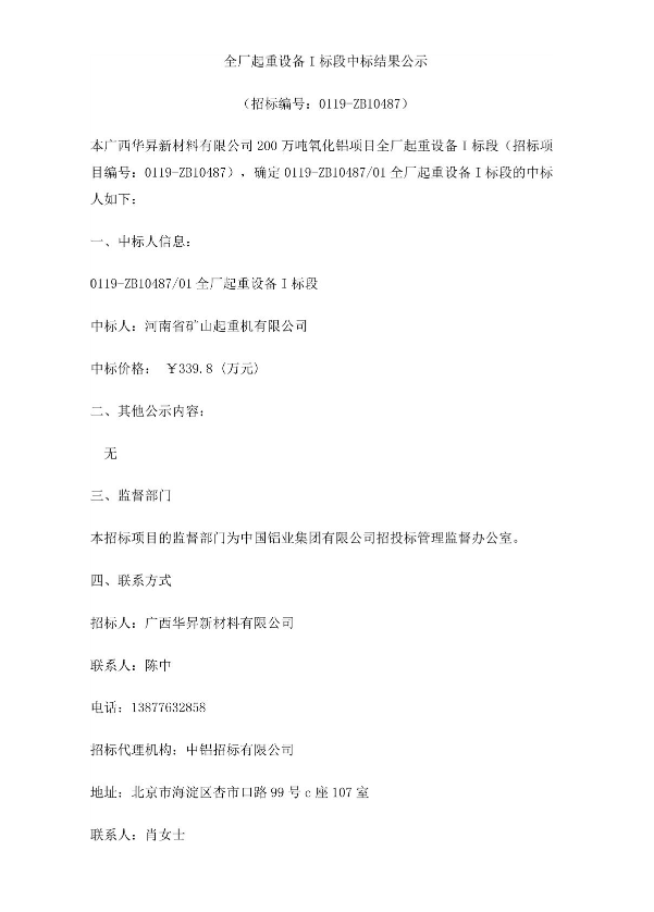 移動(dòng)版:全廠起重設(shè)備I標(biāo)段中標(biāo)公示