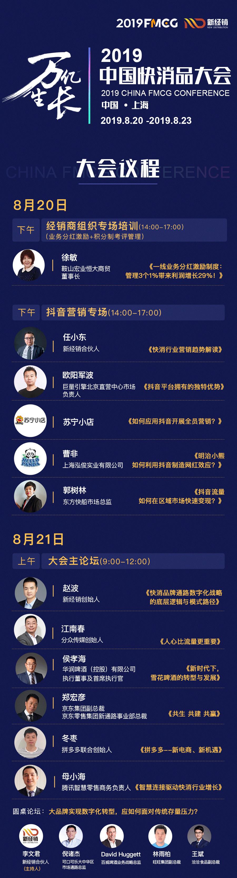 PS:2019年8月20日-23日,一年一度由新經銷舉辦的快消品行業盛會「萬億生長·2019中國快消品大會」即將在上海震撼開啟!100余位重量級分享嘉賓,4000+快消行業從業人員,18場重磅議題。本屆大會以“萬億生長”為主題、“創新產品、創新渠道及創新營銷”為話題,發掘新時代下支撐企業未來十年快速增長的新模式,新方法,新趨勢。