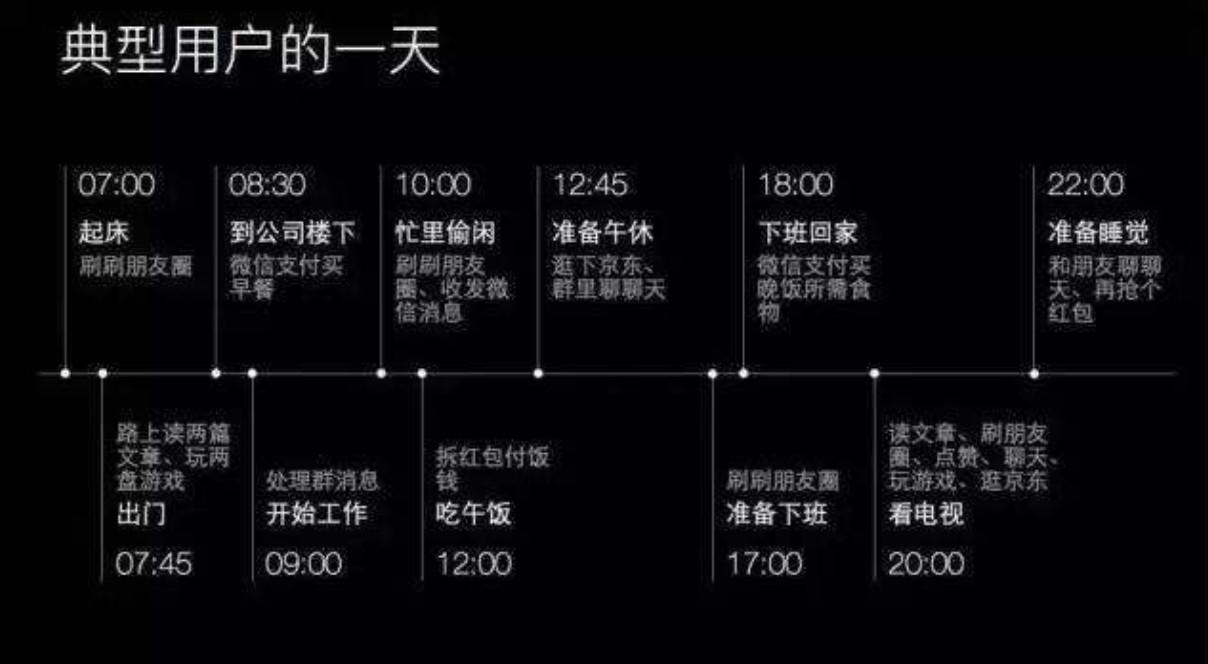 其實在互聯網行業,對于這條原則的理解及使用更為廣泛。下圖是微信針對用戶的行為習慣的分析,在這個基礎之上,不斷優化改善自己的產品,搶奪用戶有限的時間及注意力,最終帶來高轉化率和品牌的粘性。