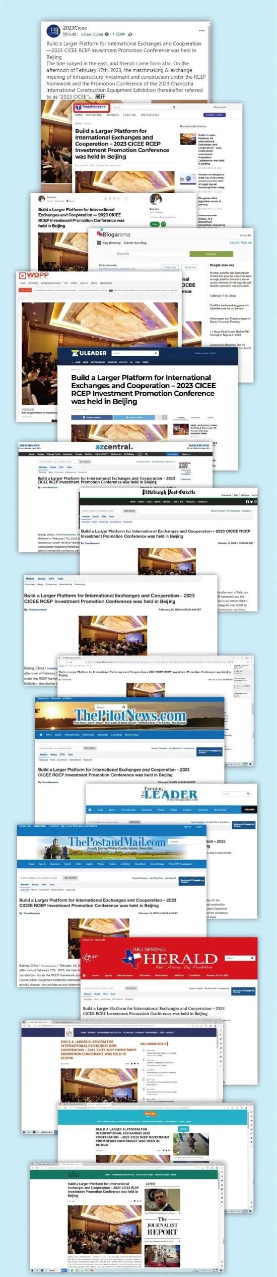 世界開展新聞社、更新新聞在線、歐盟領(lǐng)袖報、《世界內(nèi)參》、每日時代領(lǐng)導(dǎo)者、美國前驅(qū)日報、美國晨報、美國先鋒晚報等120家全球聞名網(wǎng)絡(luò)媒體,Twitter、Facebook、TikTok3個全球頂部社交新媒體賬號,對2023長沙世界工程機械展RCEP推介會進(jìn)行了適當(dāng)密布的轉(zhuǎn)載報導(dǎo),報導(dǎo)信息覆蓋北美洲、歐洲、亞洲3大洲數(shù)十個國家。