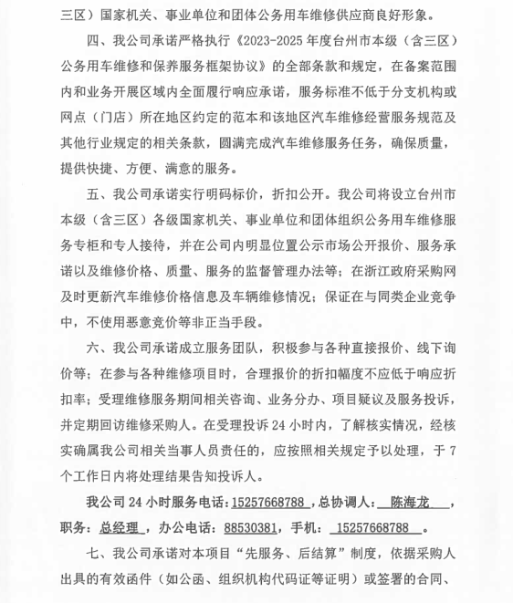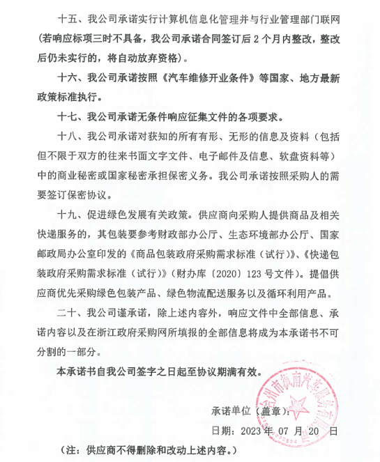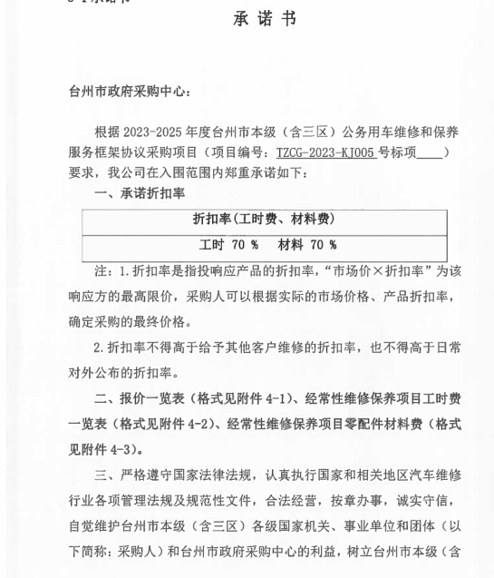 一、二類(lèi)維修供應(yīng)商(綜合修理類(lèi)) 臺(tái)州市楓南汽車(chē)服務(wù)有限公司一、二類(lèi)維修供應(yīng)商(綜合修理類(lèi)) 承諾書(shū):