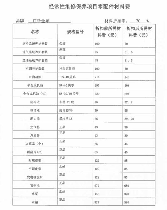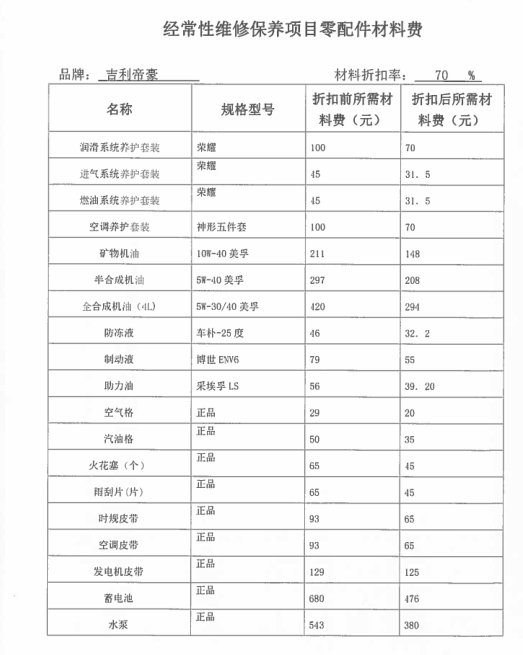 經(jīng)常性維修保養(yǎng)項(xiàng)目零配件材料費(fèi):