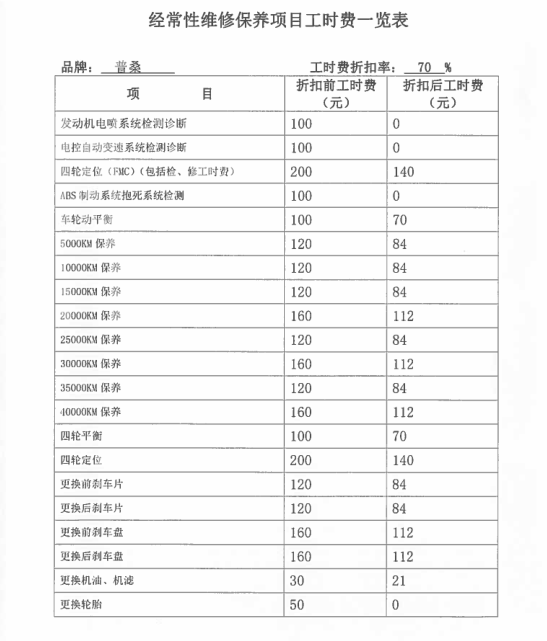 經(jīng)常性維修保養(yǎng)項(xiàng)目工時(shí)費(fèi)一覽表: