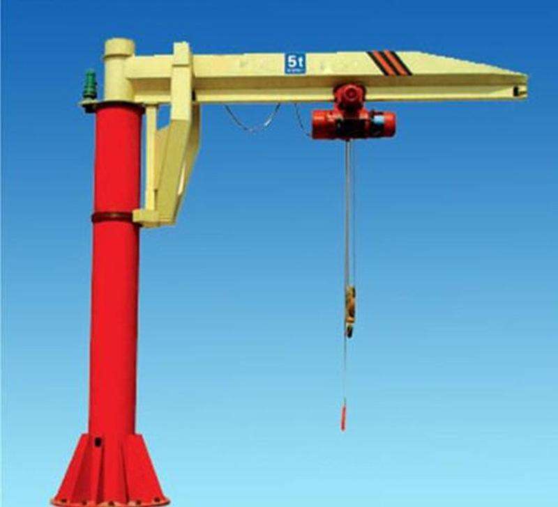懸臂吊起重機工作強度為輕型,起重機由立柱,回轉臂回轉驅動裝置及電動葫蘆組成,立柱下端通過地腳螺栓固定在混凝土基礎上,由擺線針輪減速裝置來驅動懸臂回轉,電動葫蘆在懸臂工字鋼上作左右直線運行,并起吊重物。起重機旋臂為空心型鋼結構,自重輕,跨度大,起重量大,經濟耐用。內置式行走機構,采用帶滾動軸承的特種工程塑料走輪,摩擦力小,行走輕快;結構尺寸小,特別有利于提高吊鉤行程。