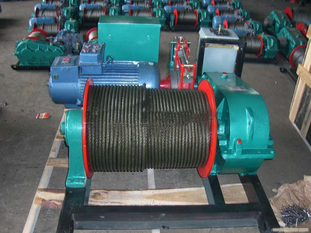 控慢速卷揚機、JK電控高速卷揚機、 JKL手控快速溜放卷揚機、2JKL手控雙快溜放卷揚機、電控手控兩用卷揚機、JT調速卷揚機、KDJ微型卷揚機等,僅能在地上使用,可以通過修改用于船上。它以電動機為動力,經彈性聯軸節,**封閉式齒輪減速箱,牙嵌式聯軸節驅動卷筒,采用電磁制動。該產品通用性高、結構緊湊、體積小、重量輕、起重大、使用轉移方便,被廣泛應用于建筑、水利工程、林業、礦山、碼頭等的物料升降或平拖,還可作現代化電控自動作業線的配套設備。JM系列為齒輪減速機傳動卷揚機。適用于建筑安裝公司、礦區、工廠的土木建筑及安裝工程。
