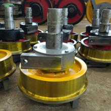 車輪組主要由車輪、軸、軸承箱組成。為便于安裝和維修,將車輪安裝在可整體拆卸接得角箱中,形成獨立部件。起重機運行機構(gòu)車輪的水平偏斜值是起重機重要的技術(shù)參數(shù),偏斜值超差會造成啃軌,增大運行阻力,產(chǎn)生振動和噪音,加劇軌道和車輪磨損,大大降低起重機使用壽命,所以各類起重機制造技術(shù)條件都要對車輪水平偏斜規(guī)定允許的數(shù)值。